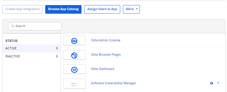 To assign Software Vulnerability Manager users to the Okta SSO app, click settings drop down, and choose Assign to Users. You can also assign user by clicking Assign Users to App tab.