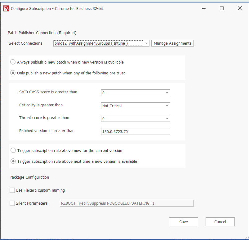 - Only publish a new patch when any of the following are true: Publishes when any one of the defined preferences are met.