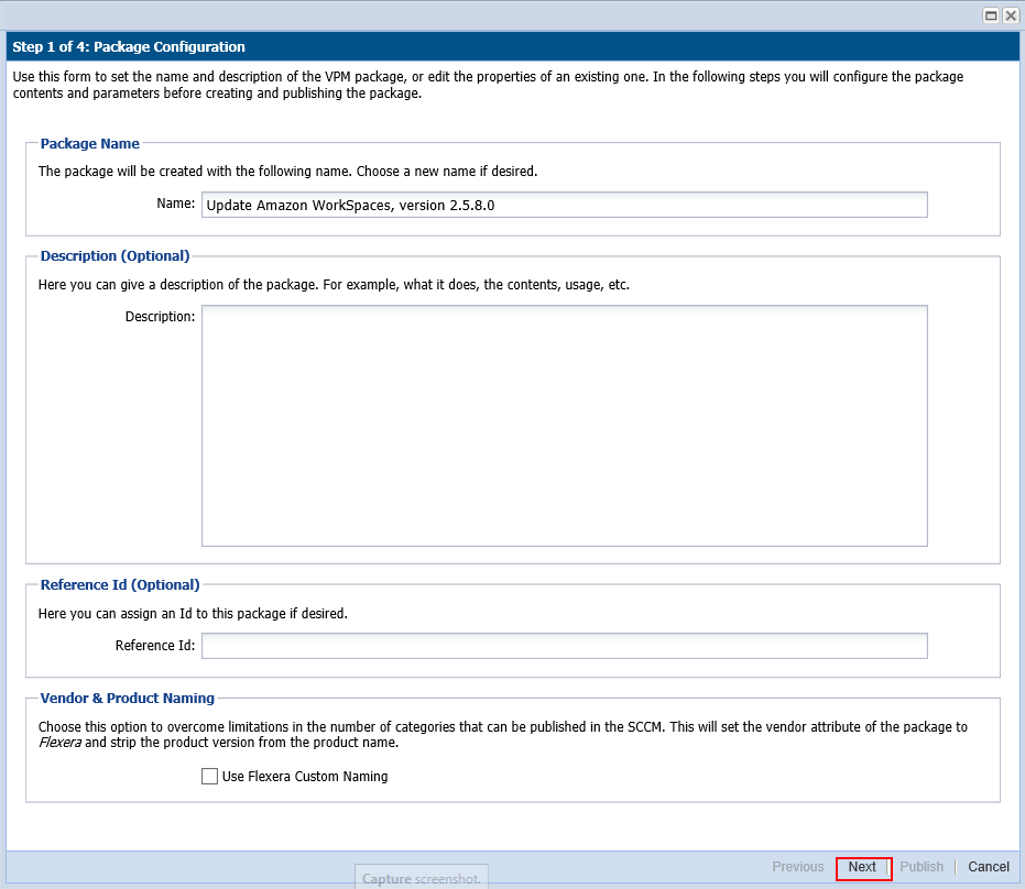 Step 1 of 4: Package Configuration
