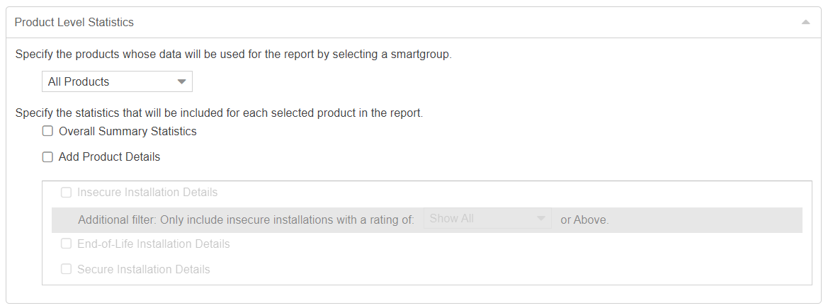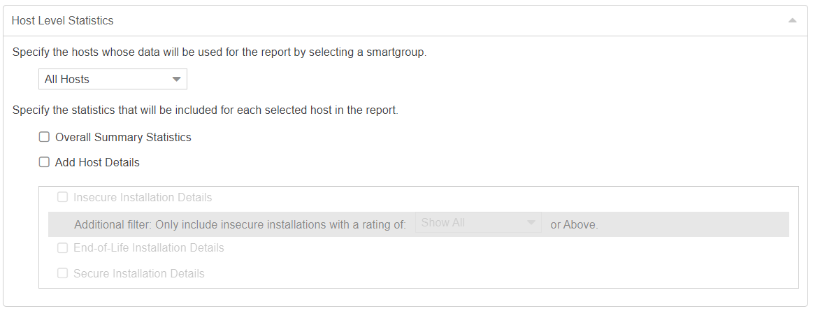 Insecure Installation Details for both Host Level Statistics and Product Level Statistics are enabled only when you select Add Product Details and Add Host Details respectively.