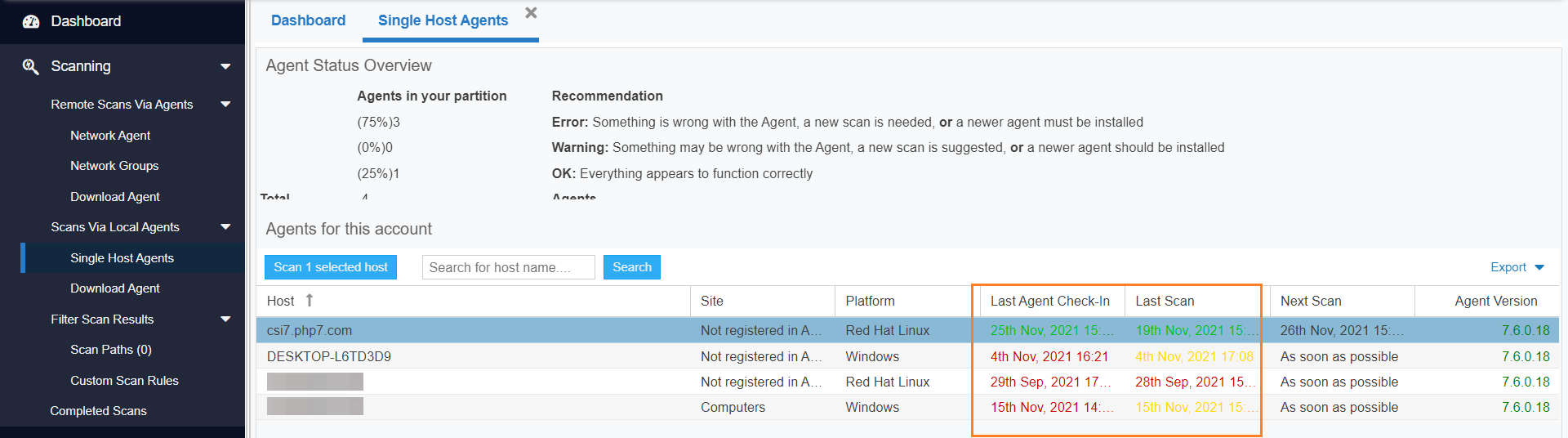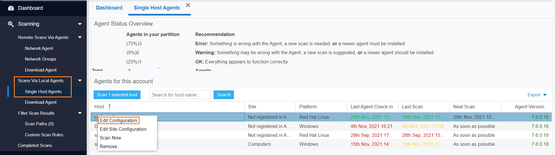 • Manage configurations and schedule scans for the hosts where the Agent is installed as a service in Single Host mode.